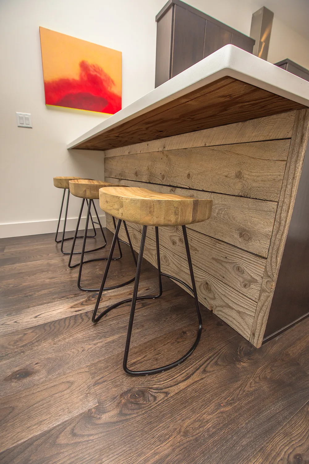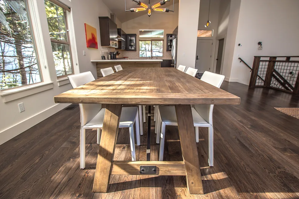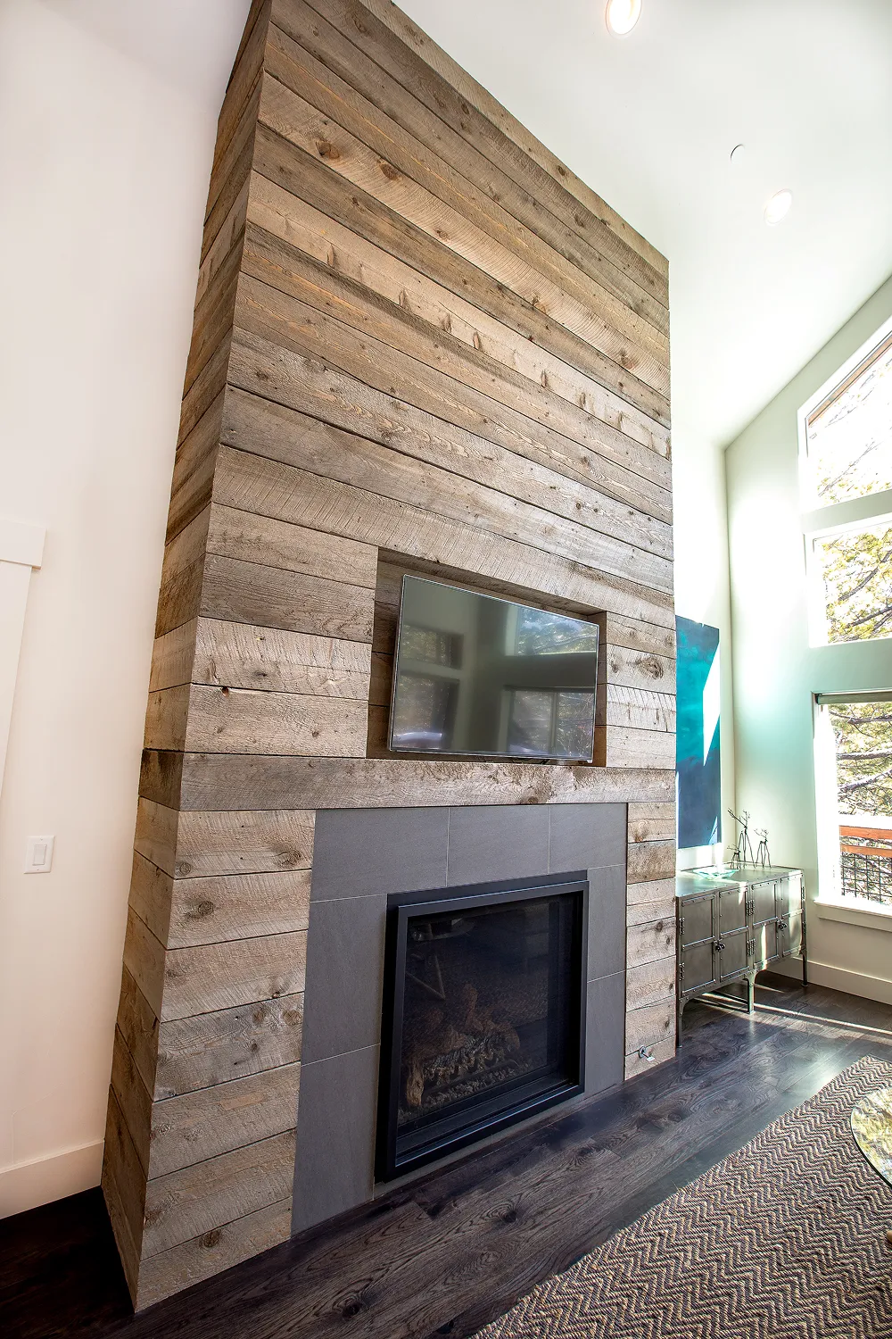 The St.Moritz project was remodeled with a warm, modern aesthetic featuring reclaimed wood accents and clean lines throughout. Large windows and open spaces bring in plenty of natural light, highlighting the craftsmanship and balance between modern design and natural materials